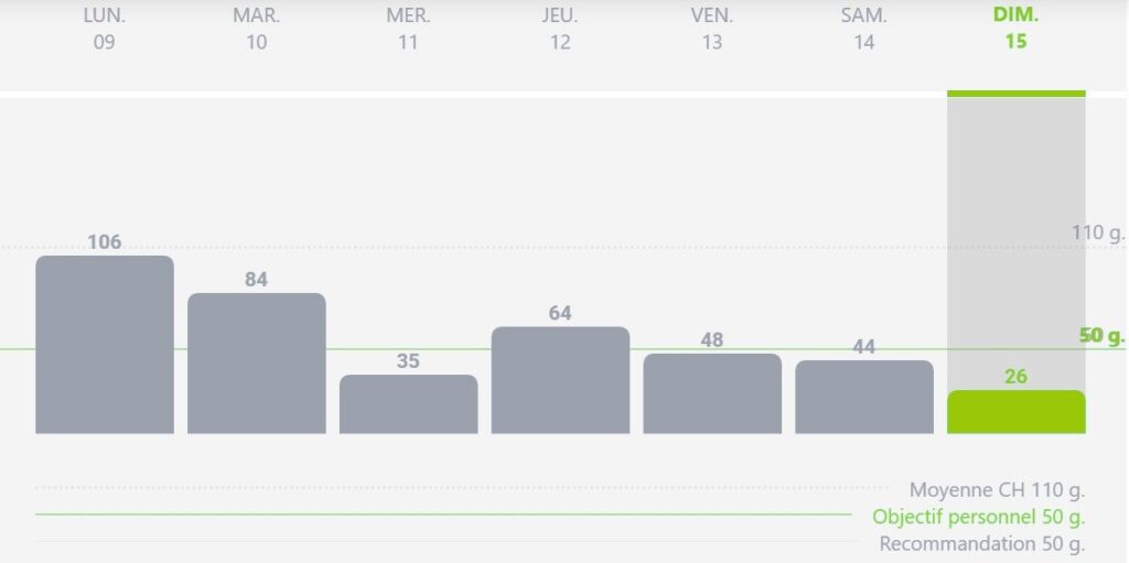 En moyenne, la population suisse consomme 110g de sucres ajoutés par jour. Cependant, l’OMS recommande un maximum de 50g. En réalité, la majorité des gens le dépassent sans le savoir.